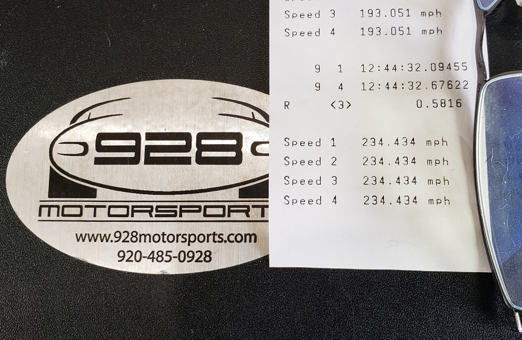 While not the fastest Porsche in the world, our 234.434 mph this day did place The Meg in rare company as one of the fastest Porsche’s on the planet, and also set a solid closed-course record any 928 owner can be proud of.